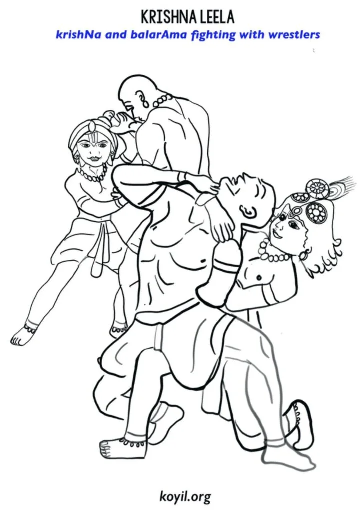 ಕೃಷ್ಣನು ಚಾಣೂರನೊಂದಿಗೆ ಮತ್ತು ಬಲರಾಮನು ಮುಷ್ಟಿಕನೊಂದಿಗೆ ಹೋರಾಡಿ, ಇಬ್ಬರೂ ಮಲ್ಲರನ್ನು ಕೊಂದರು. ತಮ್ಮ ಮೇಲೆ ದಾಳಿ ಮಾಡಲು ಬಂದ ಇತರ ಮಲ್ಲರನ್ನೂ ಅವರು ಸಂಹರಿಸಿದರು. ಇದನ್ನು ಕಂಡ ಜನರೆಲ್ಲರೂ ಸಂತೋಷಗೊಂಡರು. ಆದರೆ ಆನೆ, ಮಾವುತ ಮತ್ತು ಈಗ ಮಲ್ಲರನ್ನು ಕೊಂದಿದ್ದರಿಂದ ಕಂಸನು ತುಂಬಾ ಭಯಭೀತನಾದನು.