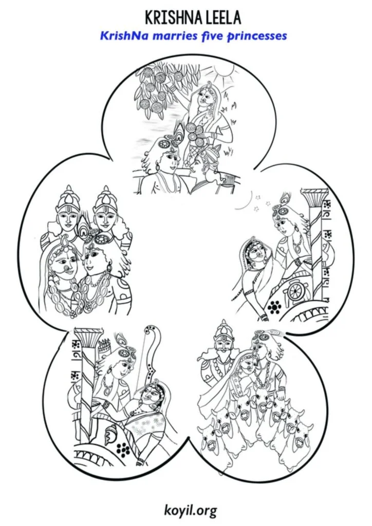 ಕೃಷ್ಣನು ಇನ್ನೂ ಐವರು ಸ್ತ್ರೀಯರನ್ನು ಹೇಗೆ ಮದುವೆಯಾಗುತ್ತಾನೆ ಎಂಬುದನ್ನು ನಾವಿಲ್ಲಿ ನೋಡೋಣ. ಕೃಷ್ಣಾವತಾರದಲ್ಲಿ ಈ ಐವರು ಸ್ತ್ರೀಯರೂ ಸೇರಿದಂತೆ ಒಟ್ಟು ಎಂಟು ಜನ ಸ್ತ್ರೀಯರು ಅವನ ಪ್ರಮುಖ ಪತ್ನಿಯರಾಗಿದ್ದಾರೆ (ಅಷ್ಟಮಹಿಷಿಯರು).