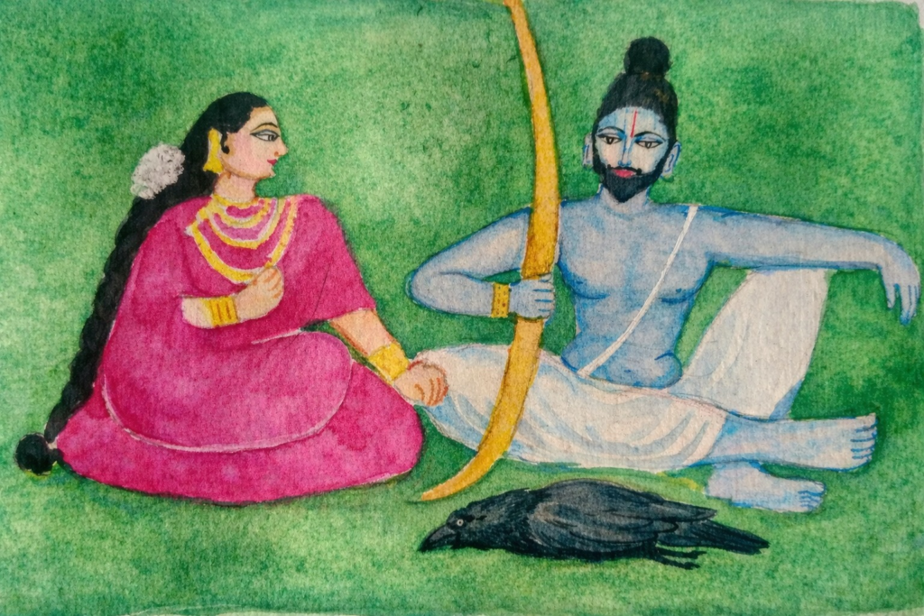 (Note from kAlakshEpam: In periyAzhwAr thirumozhi 3-10, periyAzhwAr highlights the conversation in sundhara kANdam between thiruvadi and sIthAp pirAtti, where the story of kAkAsura is narrated. Once, kAkAsura, the son of indhra, in the form of a crow, pecked and disturbed pirAtti while perumAL and pirAtti where in chithrakUtam. Although he moved away temporarily after pirAtti chased him off, he persisted and returned to attack her while perumAL was sleeping on her lap. He pecked her divine bosom, causing it to bleed. perumAL woke up and immediately empowered a blade of grass, transforming it into a brahmAsthram (weapon), to destroy kAkAsura.